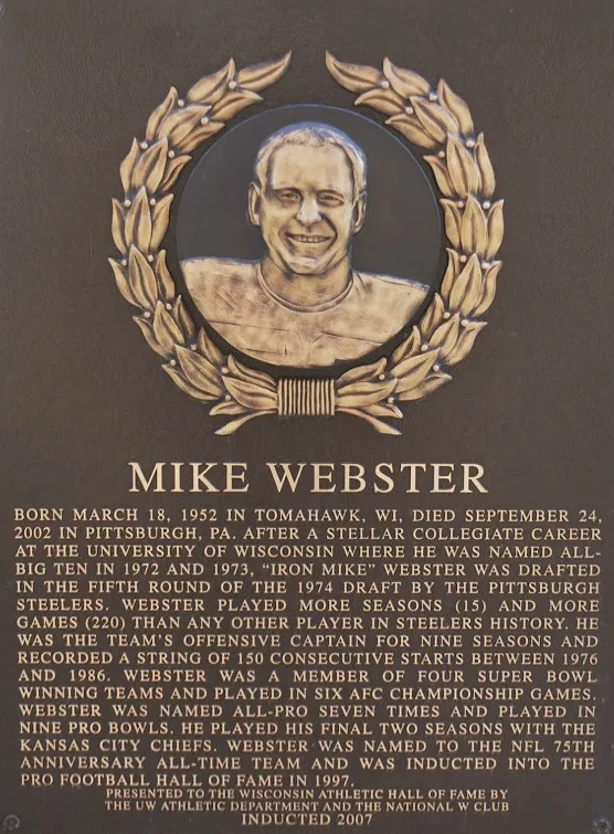 After a stellar collegiate career at the University of Wisconsin, where he was named All-Big Ten in 1972 and 1973, “Iron Mike” Webster was drafted in the fifth round of the 1974 draft by the Pittsburgh Steelers.